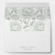 Sage Green Monogram Crest Wedding Envelope: Vintage-inspired line art monogram crest with elegant sage green typography. Features a chinoiserie floral pattern on the inside for timeless sophistication. Elegant script font for a formal and classic style.