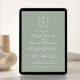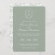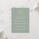 Sage Green Monogram Crest Wedding Invitation: Vintage-inspired line art monogram crest with elegant sage green typography. Features a chinoiserie floral pattern on the reverse for timeless sophistication.