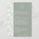 Sage Green Monogram Crest Wedding Menu Card: Vintage-inspired line art monogram crest with elegant typography. Features a chinoiserie floral pattern on the reverse and on the side for timeless sophistication. Enter the design tool option if adjustments are needed when your menu text is added.