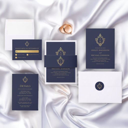 Navy & Gold Wedding Suite with Vintage CrestDesigned by Artifex Designs