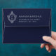 Crest Navy Blue Wedding Monogram Faux Silver Foil Envelope