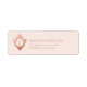 An elegant blush pink and rose gold design with a vintage air, with a wedding monogram from the 2 initials of the bride and groom, in a vintage faux rose gold foil crest, before the name and address, written in pink caps. The background is blush pink.