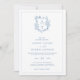 Formal & elegant crest monogram blue wedding invitation with QR code and more detailed information on the back.