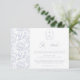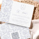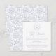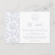 Dusty Blue Monogram Crest Wedding Details card: Vintage-inspired line art monogram crest with elegant dusty blue typography. Features a chinoiserie floral pattern for timeless sophistication. Elegant script font for a formal and classic style. Add your own webside with a custom QR code on the reverse or simply delete it for a more traditional card.