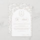 Pale Taupe Monogram Crest Wedding Details card: Vintage-inspired line art monogram crest with elegant pale taupe typography. Features a chinoiserie floral pattern in the shape of an arch and on the reverse for timeless sophistication. Elegant script font for a formal and classic style. Add your own webside with a custom QR code on the reverse or simply delete it for a more traditional card.