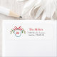 Elegant Holiday Return address Label featuring a hand painted watercolor crest with citrus and red bow with Monogram in the center.