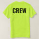 Personalised t-shirt for your crew or staff employees. Easily identify your team members with these customisable t-shirts. Large print Crew text on back in large black block font for high visibility. Front smaller print and custom name. Makes a great budget bulk work uniform shirt. Simple minimal design for your small business. Easily change font style and colour in the design tool.