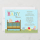 This cute Baby Shower invitation features a baby in it's crib in a modern babies room. Also includes a toy truck, elephant, ball and alphabet blocks. Some elements stockberrystudio