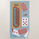 Whether you're playing your own game of beach cribbage or just soaking up some rays, you'll love this beach towel that's perfect for cribbage players. It features an illustration of a cribbage game board in tan, red, white and blue as well as illustrations of playing cards and game pegs set against a light blue background.