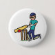 Cricket design shows a batsman kneeling down to hit the ball out of the ground. Plays shot in front of stumps in a fun graphic for cricketers and cricket fans.