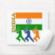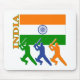 Three silhouetted Indian Cricket Players under the Indian Flag with the country name India along the side.