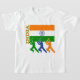 Three silhouetted Indian Cricket Players under the Indian Flag with the country name India along the side.