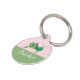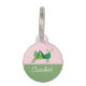 This pet ID tag features a cheerful green cricket set against a soft pink and sage green background, complementing the playful nature of the tag. The area for personalising is clearly designated, ready to be customised with a pet's name in a flowing, easy-to-read font. The tag blends lighthearted charm with practicality, ensuring that a pet can be identified in style.