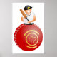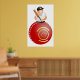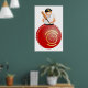 Cute illustration of a happy little cricket player standing ontop of a giant cricket ball. Maybe he just plays for fun or maybe he is a professional sportsman. Image available on various gifts and products.