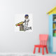 Cricket design shows a batsman kneeling down to hit the ball out of the ground. Plays shot in front of stumps in a fun graphic for cricketers and cricket fans.