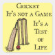 Cricket It's not a Game It's a Test of Life - Design also shows Cricket Bat, Cricket Ball, and Wickets.