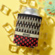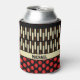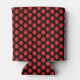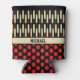 Red cricket balls on a black background create a striking pattern on both the front and the back of this cricket-themed can cooler. On the front, cricket bats are also used in a complementary pattern, and there is a wide stripe for you to personalise with a name or other text in black.