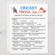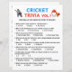 Cricket Trivia Game's answer key: 1. C, 2. C, 3. A, 4. B, 5. B, 6. A, 7. A, 8. B, 9. A, 10. C, 11. A, 12. B, 13. A, 14. A, 15. C, 16. A, 17. B, 18. C.