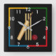 Cricket, wicket, bat and ball, square wall clock