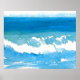 From my original beach art painting, this ocean art / beach art poster has a wonderful feeling of the sea and is perfect for a nautical themed decor, beach decor, beach house, beach cottage or ocean themed room. The colours in this beautiful beach poster are ocean blue and white of the sea waves. It is a great way to add ocean art to a beach decor or simply to enjoy the feeling of the beach. Artwork by CricketDiane and Cricket House Studios Art and Design.