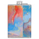Crimson, Blush, Blue and Gold Marbled Alcohol Ink Hip Flask