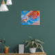 Crimson, Blush, Blue and Gold Marbled Alcohol Ink Poster