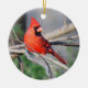 Crimson Cardinal decorates cheery Christmas ornament. Bright addition to home decor!
