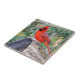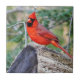 Bright red cardinal decorates ceramic tile. Bright accessory for home decor.