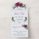 Crimson Christmas Rose Bouquet Wedding All In One Invitation
