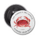 Personalised Crimson Crab themed button bottle opener favours for your next Crab Boil Party or seafood event. It features a watercolor styled illustration of a red crab. Surrounding this are spots for your unique event information.