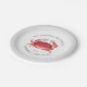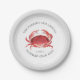Personalised grey and white Crab themed food paper plates for your next Crimson Crab Party or seafood event. It features a watercolor styled illustration of a crimson red crab. Surrounding this are spots for your unique event information on this tableware.