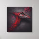 It is a captivating artwork portraying the fossilised head of a dinosaur. This abstract masterpiece creates a 3D effect in blood red and charcoal hues, as the ancient creature emerges from the dark stone. Explore the intriguing intersection of history and art in this vivid portrayal.