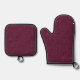 Crimson glitter oven mitt & pot holder set