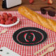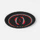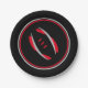 Colourful circles rim the plate with a Black background and Black rims with a modern art football graphic/logo. Seven inches in size and made of paper. Customise or buy as is.