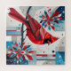 A striking fusion of realism and abstraction, this design features a vivid red cardinal perched gracefully amid a symphony of geometric petals and modern motifs. The lifelike feather textures and bold red hues contrast beautifully with layered floral patterns in red, white, and blue, creating a dynamic interplay of nature and design. Perfect for apparel, prints, and accessories that celebrate elegance, freedom, and artistic flair.