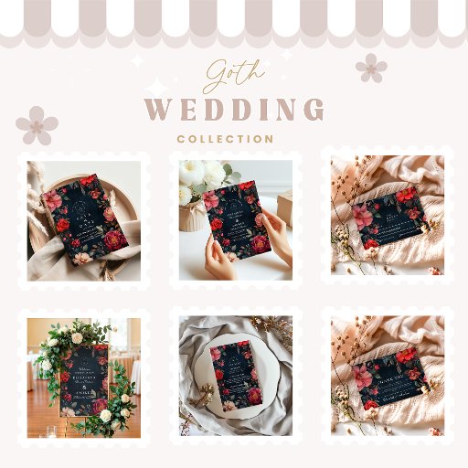 A lush baroque-inspired design blooms in rich midnight blues and burnished autumn florals, perfect for a moody yet romantic wedding vibe. Deeply atmospheric and full of vintage charm, this floral layout is ideal for fall ceremonies, gothic garden themes, or any couple seeking a dramatic and elegant tone. Customisable with your names and event details, it sets the perfect first impression for your big day.