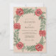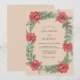 A charming botanical design featuring deep crimson roses artfully arranged with lush green foliage. The painterly watercolor style evokes a romantic and classic mood, perfect for a timeless celebration.
