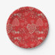 Crimson red grey valentine doodle hearts pattern paper plate