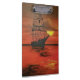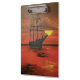 Original artwork by Manuela Davis depicting a clipper ship silhouette against a red sky reflecting on the ocean water. maritime vessel. For fans of ships and sailing. pirate ships.