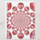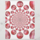 This artwork features a central, spiralling vortex formed by numerous red cricket balls decreasing in size towards a vanishing point. Surrounding this dynamic core are larger, more detailed depictions of red cricket balls, showcasing their textured leather and prominent white stitching from various angles. The entire composition is set against a clean white background, emphasizing the central motif and its details.