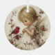 A winged child in flowing white shares a quiet moment with a red cardinal, framed by festive holly. The artwork glows with seasonal magic and innocence. Personalize the name to create a keepsake full of meaning.
