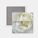 Exquisite crisp white rose wedding magnet personalised with your names and date.