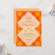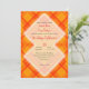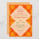 Crisscrossed red, and orange check patterns in bold over a warm happy yellow-orange for personalised modern abstract design for wedding stationery personalise.