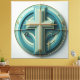 Bring a touch of elegance and faith to your space with this abstract ai Christian Cross canvas print. Designed with a teal and turquoise background, subtle gold details, and modern boho styling, this wall art is ideal for living rooms, offices, prayer corners, or church spaces. A thoughtful gift for Christians and loved ones of faith, it makes any room peaceful and stylish.