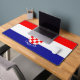 This desk mat features the flag of Croatia with a coat of arms and customisable curved text "Croatia" in a white font at the bottom. Personalise it with your name or text.