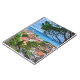 View of the small town Omis surrounded with mountains, Cetina river and sea, Makarska Riviera, Croatia. View of pine tree, old city centre with red rooftops and blue see.
