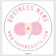 Crochet Crocheting Website Custom Business Name Stickers Labels features a crochet hook and pink yarn with your custom text such as business name and company website in modern typography script on a white background. Personalised by editing the text in the text boxes provided. Perfect for small business, crochet products, envelope seals, gifts and favours. Designed by ©2024 Evco Studio www.zazzle.com/store/evcostudio