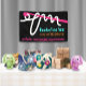 Loopy yarn stitch wrapped around a crochet hook on this craft show booth or table display banner, personalised with your choice of fonts and text and colour scheme.