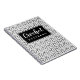 I have many of these notebooks in my home office and use them for keeping track of colors and design ideas for my Zazzle shops. They're a perfect size for my smaller desk and for popping into my tote bag if I need to take notes somewhere else. I was really happy with the print job on the glitter and metallic foil elements. I had shied away from designing with glitter because I wasn't sure it would look realistic in printer's ink. Since receiving my notebook, I've added more glittery and shiny surfaces onto my designs, knowing they'll look great when they're printed.