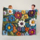 Wrap yourself in cosy retro vibes with this fleece blanket featuring a crochet-inspired design of wildflowers in a boho hippie style. Embracing peace, love, and nature, this vibrant floral blanket adds a touch of vintage charm to any space. Perfect for free spirits who love timeless, flower-filled designs!